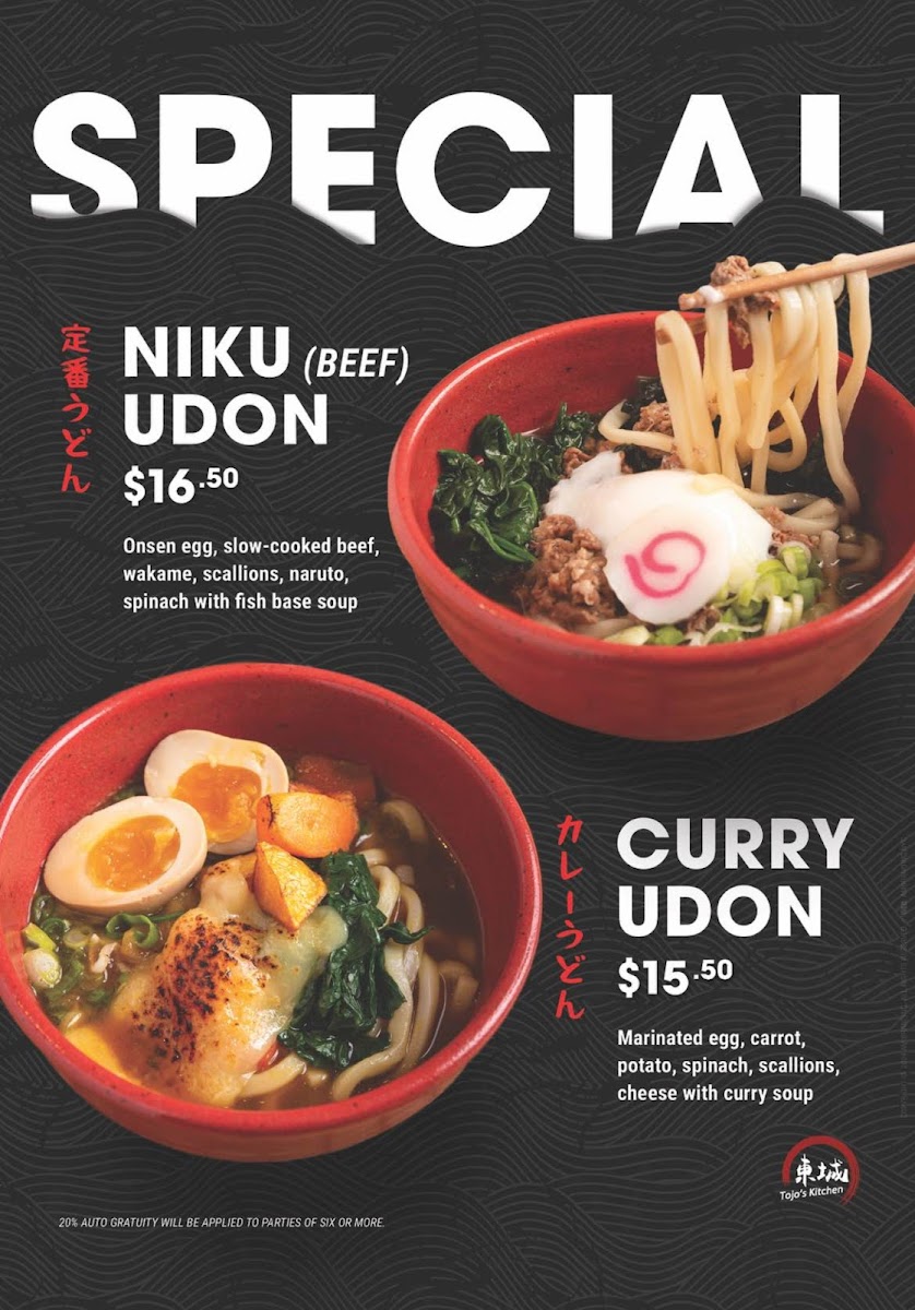 With a diverse menu, Tojo’s Kitchen specializes in various ramen dishes, ranging from the rich Tonkotsu Ramen to a delightful vegetarian Tomato Ramen.